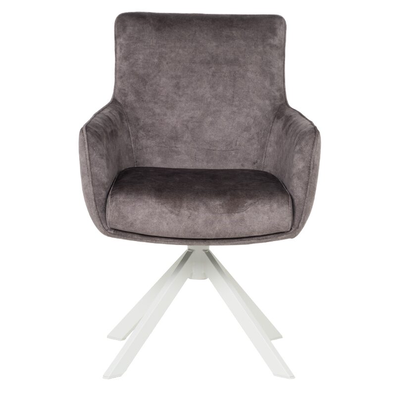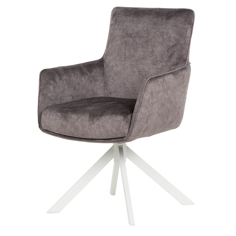 Трапезният стол VALGA 6 предлага изключителен комфорт и стилен модерен дизайн, перфектен за всяка съвременна трапезария. Седалката е тапицирана с висококачествена дамаска и покет пружини, а подлакътниците и люлеещият механизъм осигуряват релаксация. Масивната основа от праховобоядисан метал в кашмирено бяло добавя елегантност и издръжливост. Въртящата функция на 360° с автоматично връщане прави стола практичен и функционален.