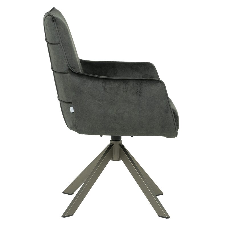 Трапезният стол VALGA 7 предлага изключителен комфорт и стил, благодарение на тапицираната седалка с висококачествена дамаска и покет пружини. С 360° въртящ механизъм и люлееща функция, този стол е идеален за релаксация и хранене. Металната основа в тъмен бронз добавя модерен акцент, правейки го перфектен избор за всеки интериор.