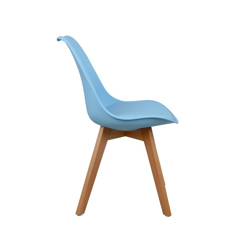 Седалка–облегалка: Висококачествен полипропилен с възглавница от PU кожа в син цвят.