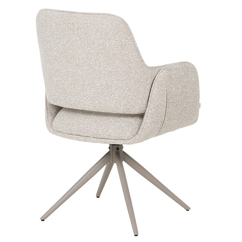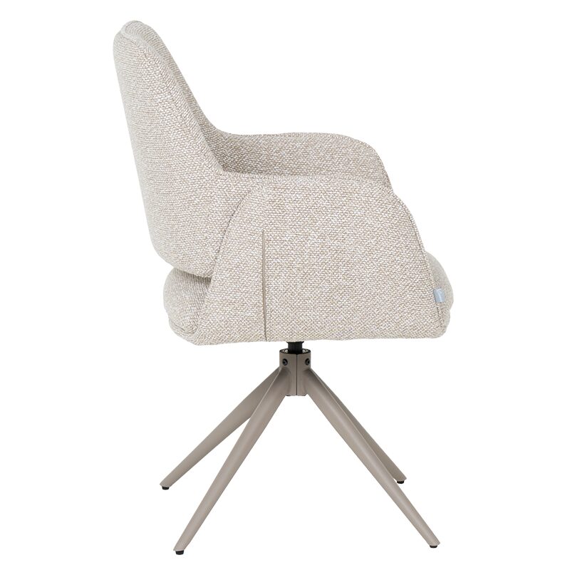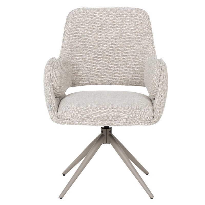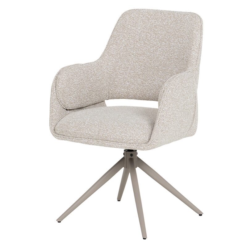 Трапезният стол Vinto предлага върховен комфорт и стил за вашата трапезария. С мека седалка с покет пружини и кремава дамаска, той осигурява оптимална опора. Здравата метална основа с прахово покритие и 360-градусово въртене гарантира издръжливост до 120 кг. Насладете се на елегантността и функционалността на този ергономичен стол, идеален за всеки модерен дом.