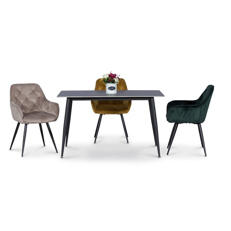 Трапезната маса ROME е перфектният избор за всеки, който цени стил и функционалност. Създадена от издръжлив технически камък и стабилна метална основа, тя предлага устойчивост и лесна поддръжка. Нивелиращите тапи осигуряват стабилност на всякакви повърхности. Идеална за модерни домове и професионални пространства, като ресторанти и кафенета. Насладете се на съвършенство във всеки детайл.