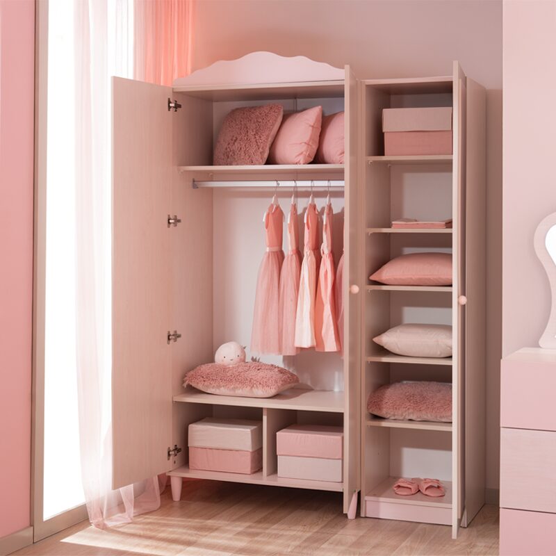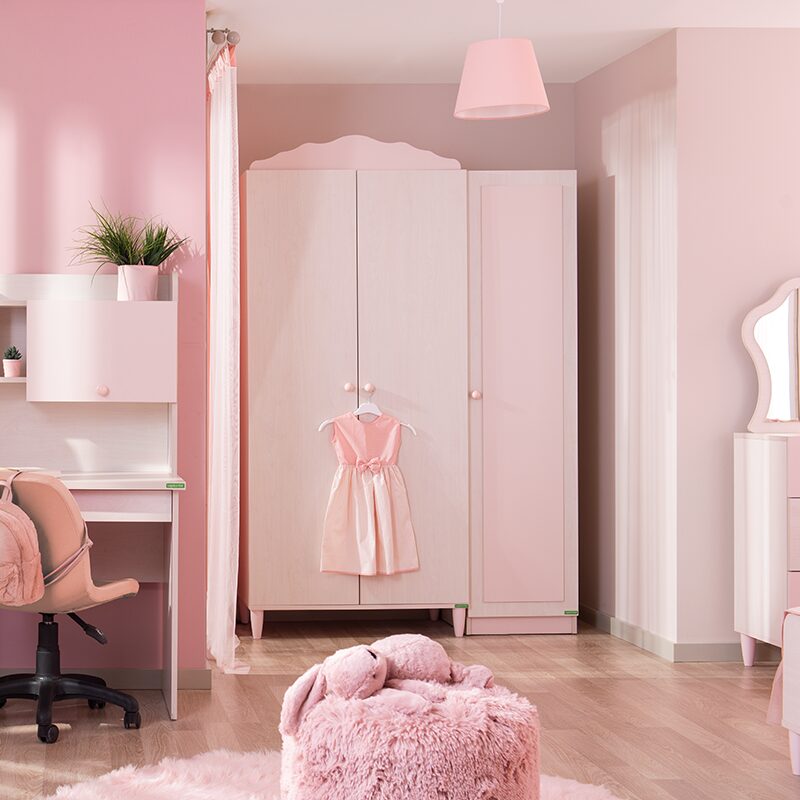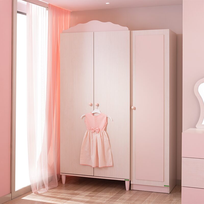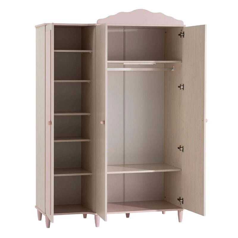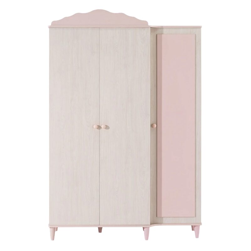 Гардеробът POLLINA с 3 врати е перфектното решение за стилна и функционална детска стая. Съчетавайки мек розов акцент и светла дървесна текстура, той предлага адаптивност с модулната си конструкция. Изработен от висококачествено ПДЧ, гардеробът разполага с LED осветление, регулируеми рафтове и плавно затварящи се врати, осигурявайки удобство и издръжливост.