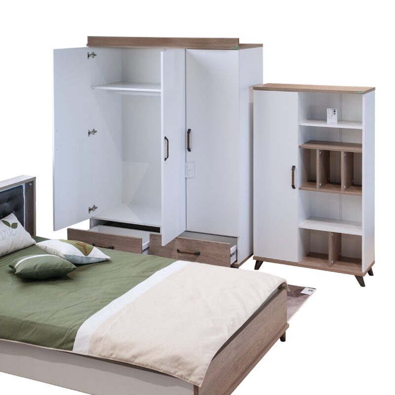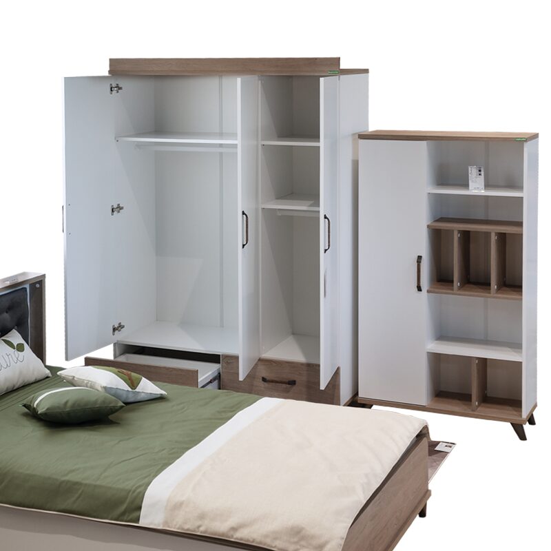 Трикрилният гардероб NATURA е идеалното решение за подреждане и стил в стаята на вашия тийнейджър. Съчетанието на модерния дизайн с хармоничните цветове бяло и кафяво създава усещане за простор и елегантност. Изработен от висококачествено ПДЧ, този гардероб предлага издръжливост и функционалност, които ще задоволят нуждите на всяко младо семейство.