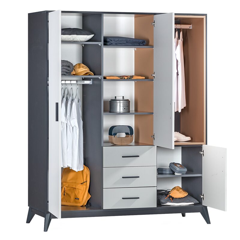 Трикрилният гардероб BREDA предлага идеалното решение за стилна организация на вашите дрехи и аксесоари. Със своите просторни отделения, рафтове и лост за закачалки, той осигурява оптимална подредба. Изработен от висококачествени ПДЧ материали, гардеробът гарантира здравина и дълготрайност. Вграденото LED осветление и механизмът за плавно затваряне добавят комфорт и удобство. Разгледайте “Допълнителна информация” за подробности.