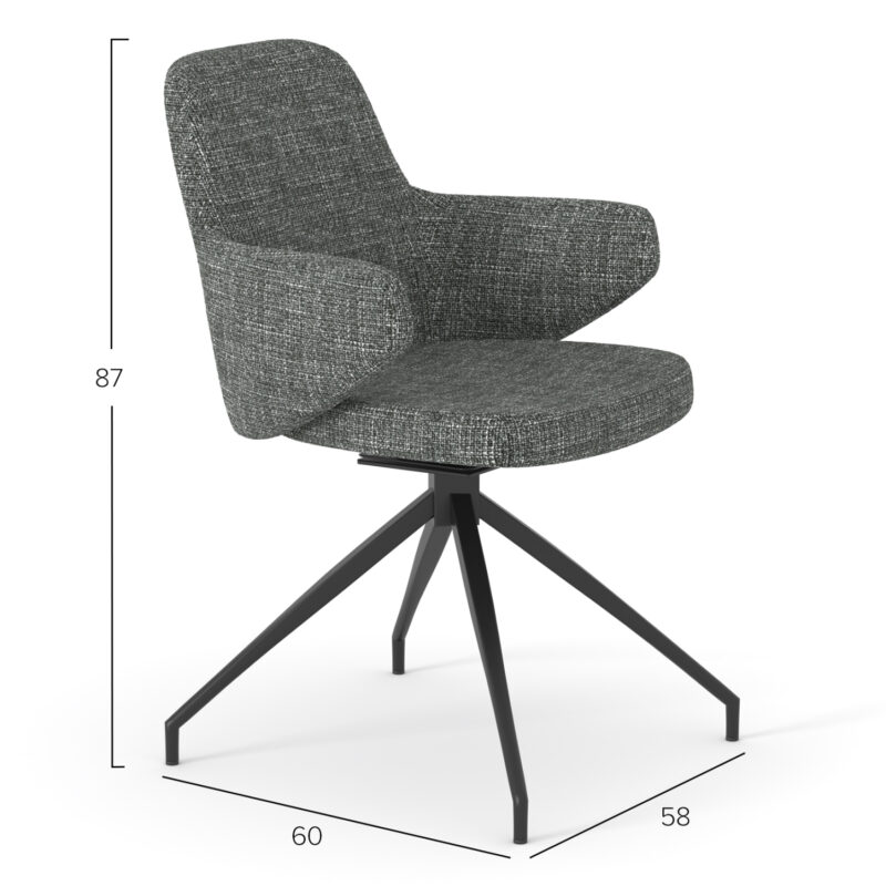 Въртящ се трапезен стол, Dominion, Сив, Текстил, 58х60х87см.